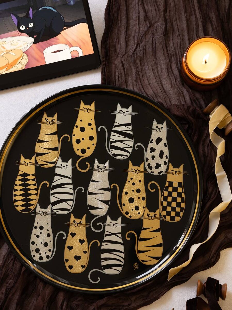 Такую прелесть нашли, Жостовская фабрика сделала! Поднос с характером и целой кошачьей командой! Круглая лаконичная форма, озорная роспись — это не классика Жостово, а настоящая арт-вещица с настроением. Авторская идея Натальи Соколовой, выполненная в технике «по порошкам», смотрится как милый декоративный объект, а не просто поднос. Такие работы художники создают редко, буквально по нескольку штук. Кот Пикассо 🐈⬛ Искусство