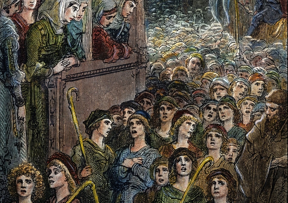 Рой Баумайстер писал: "Крестовый поход детей является одним из самых трагически абсурдных примеров самоуверенности, возникающей из веры в то, что Бог встанет на сторону праведных и верующих и гарантирует победу над языческим врагом. В 1212 году два мальчика сообщили о своих видениях, в которых Бог повелел им возглавить армию невинных детей, чтобы освободить Святую землю. Дети из городов и деревень Центральной Европы, собравшись, последовали за мальчиками. Массовые группы поющих детей отправились в Италию. Папа отправил некоторых из них домой; многие умерли от болезней или голода по пути. Многие другие, как утверждают, были проданы в рабство итальянскими купцами, которые коварно предложили переправить их через Средиземное море Представление о том, что спонтанная масса детей могла пройти более тысячи миль без логистической поддержки, по пути пересечь Средиземное море (предположительно, с помощью сухого прохода, который внезапно появился бы для молодых крестоносцев, так же как Красное мор