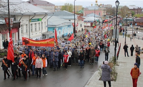 Сегодня, 9 мая, в Кунгуре прошли памятные и торжественные мероприятия, посвящённые 80-летию Победы советского народа в Великой Отечественной войне. Главными из них стали шествие Бессмертного полка по улице Карла Маркса – от бывшего машзавода до площади Победы - и марш «С Днём Победы» на Соборной площади. Кунгуряки присоединились к Всероссийской акции «Бессмертный полк» в девятый раз. Он проходил у нас в городе с 2013 по 2019 год, потом в 2022 году и сейчас, в 2025-ом. В шествии приняли участие несколько тысяч наших земляков. Это как всегда были люди всех возрастов - от воспитанников детских садов до умудрённых опытом ветеранов. Почти все шли с портретами своих родных-фронтовиков, погибших в годы Великой Отечественной войны, и тех, кто вернулся домой с полей сражений, но не дожил до наших дней. Некоторые горожане, а также коллективы культурных и образовательных учреждений встречали колонну по пути её шествия. По всему маршруту звучали песни военных лет. На Соборной площади участники акц