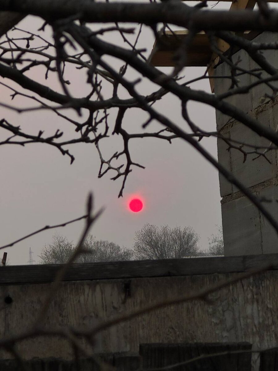 Закат над Свободным сегодня был очень не обычным. Солнце в зените окрасилось в ало красный цвет.