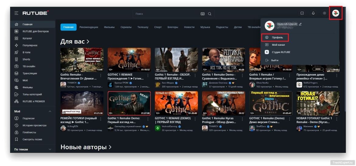 - Войдите в аккаунт. Нажмите на иконку профиля в правом верхнем углу. Если у вас нет учётной записи, создайте её за пару минут. Подробности — в нашей статье: «Пошаговая инструкция: как зарегистрироваться на RuTube в 2025 году». Отключить рекламу на RutTube: Войдите в аккаунт