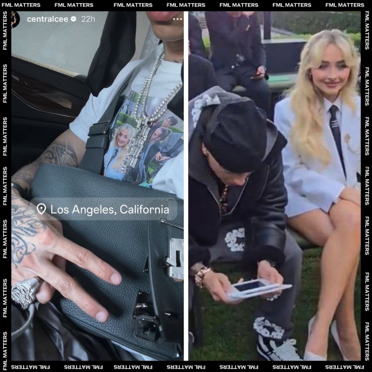 🥰 CENTRAL CEE И SABRINA CARPENTER! Рэпер опубликовал фото в футболке с их совместной фотографией, сделанной на показе «Louis Vuitton» в Париже в прошлом году. Кроме того, в его новом альбоме, в треке «CRG» есть строка, намекающая на ту же ситуацию: он поёт о том, как сидит в первом ряду на модном показе и размышляет, с какой звездой у него будет следующий роман. 💀 FML MATTERS