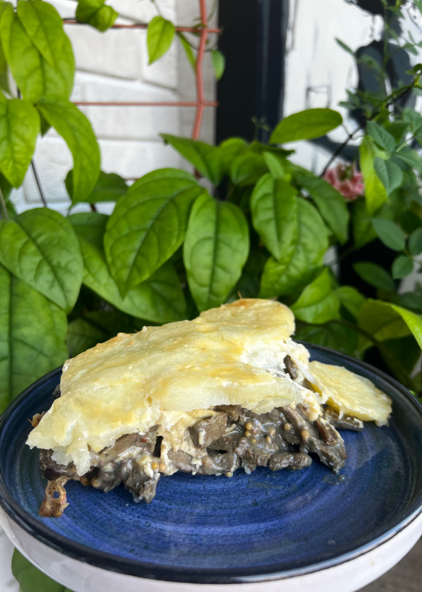 Ужин с нотками Франции - гратен с говяжьей печенью. Гратен - это кулинарная техника, при которой какой-либо ингредиент покрывается подрумяненной корочкой, часто с использованием панировочных сухарей, тертого сыра, яйца или сливочного масла. Этот термин может применяться к любому блюду, приготовленному таким способом. Гратен обычно готовится в неглубокой форме для запекания. Гратен запекается или готовится в духовом шкафу или на гриле до образования золотистой корочки и часто подается прямо в форме для запекания. Ингредиенты: *можно добавить свежую зелень **вместо сметана можно использовать греческий йогурт но тогда у печени будет не такой приятный вкус. ***картофеля лучше брать килограмм, чтобы хватило плотно закрыть верхним слоем. Приготовление: Картофель чистим, моем и нарезаем слайсами по 0.5 см. Отвариваем в подсоленной воде до полуготовности. Печень нарезаем полосками еще подмороженную (полностью растаявшую печень тонко не нарезать). Промываем и выкладываем на сковороду. Сначал