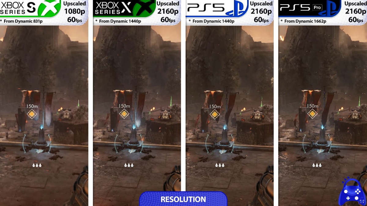 В ответ на пост Первые тесты DOOM: The Dark Ages на консолях. Один стандартный режим графики с 60 кадрами в секунду — на всех консолях планка удерживется фактически 100% времени. • Xbox Series S — динамическое 831р с падениями до 635р. • PS5 и Xbox Series X — динамическое 1440р • PS5 Pro — динамическое 1662р. • На Xbox Series S заметно снижена графика — уровень детализации, освещение, текстуры, эффекты, тени. • На PS5 графика лучше, чем на Xbox Series X — небольшие улучшения по растительности и окружению. Но разрешение на PS5 в среднем ниже, чем на Xbox Series X. • На PS5 Pro, кроме разрешения, незначительные улучшения графики — в первую очередь, фильтрация текстур и дальность прорисовки.