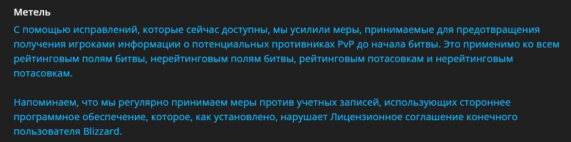 ПВПшники для вас новость: Blizzard предостерегает игроков PvP от попыток получить информацию о противниках на поле боя заранее