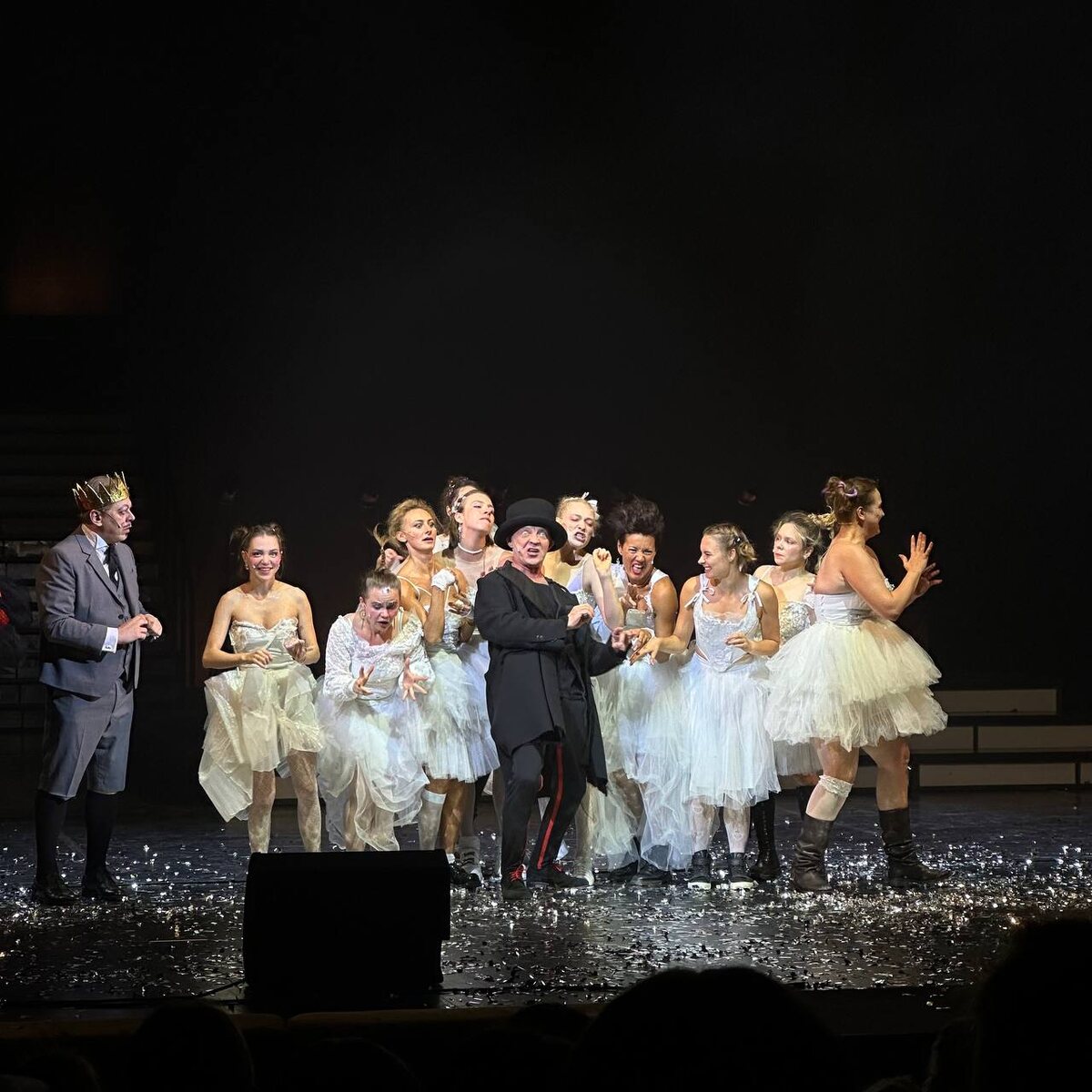 «Бременские музыканты» театра Моссовета в постановке Евгения Марчелли. Обаятельный спектакль с живой музыкой и вокалом. Честно признаюсь, не близка мне режиссура Марчелли, ни один из его спектаклей я не досмотрел: либо выключал, либо выходил в антракте. В этом же случае досмотрел, хотя антракт был. Кстати, зачем нужен был антракт, я не понял, первый акт длился 1 час 10 минут, второй 30 минут, и декорации в антракте не поменяли. Марчелли поставил сказку практически без декораций. На сцене - подиум и лестница, уходящая ввысь, откуда пару раз за весь спектакль спускается король и принцесса. Но декорации спектаклю не нужны, всю магию создают костюмы. Все одеты стильно. Глаз радуется. Бэнд рокеров, а не аниматорские костюмы животных; дерзкая принцесса с белыми распущенными волосами в черном, как у Уэнздей платье, а не девочка в русско-народном платье; обаятельная атаманша с разбойницами в белых, почти свадебных платьях, а не в рваных разбойницких лохмотьях. Двумя словами - дорого и по