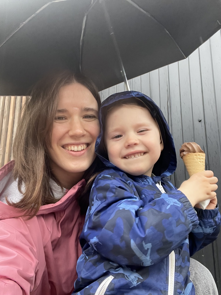 Мы встали утром с надеждой успеть на парад, посмотреть на военные машины. Но все было как обычно - долго выбирали и кушали кашу, потом я решила в последний момент помыть голову, а Даня вместо того чтобы одеваться, развернул гонки. Итого, к тому моменту как мы приехали смотреть на технику - там уже вовсю ездили легковушки. -Ну ладно, пошли кофе пить! -И какао ,- важно добавил Даня. *** С самого утра светило яркое солнышко , я совсем уж на крайний случай положила в рюкзак зонт и теплую кофту Дани. Остальное оставила в машине. Мы взяли самокат и покатили в ЦПКиО. Сначала всё шло по плану. Даня прокатился на трех аттракционах с ветерком, потом прошел курс юного бойца на детской площадке с препятствиями. А потом мы двинулись на поиски еды...и случайно набрели на дом призраков! Даню крайне заинтересовал этот дом, и пока я стояла в очереди за хот-догами и мороженной, Даня всё бегал до дома призраков, потом возвращался обратно и шептал: -Мама, я слышал как призраки говорили! Вот так вот: