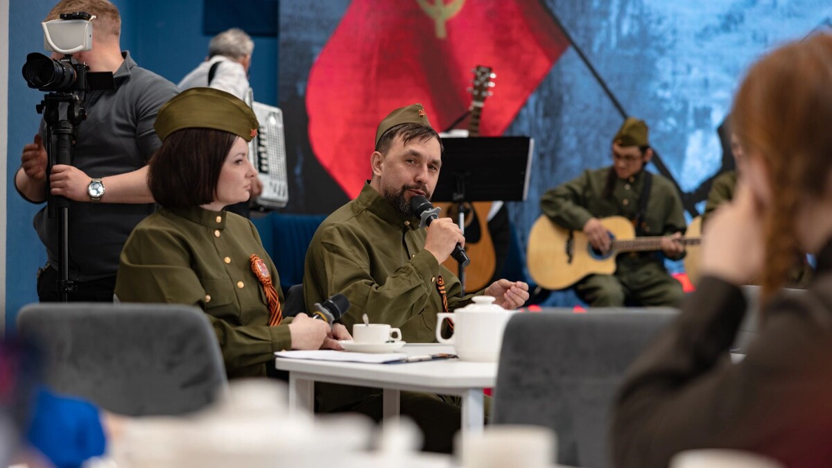 В селе Мужи Шурышкарского района после празднования Дня Победы устроили квартирник. Об этом сообщил фотограф «Ямал-Медиа» Сергей Зубков. «Шурышкарский районный молодежный центр собрал любителей живой музыки на квартирник. За чашечкой чая собравшиеся пели о войне, грелись после празднования на центральной площади и дарили друг другу улыбки», — передал фотограф медиахолдинга. В День Победы жители Мужей устроили историческую реконструкцию. Организаторы акции попытались воссоздать быт солдат Великой Отечественной войны. В Новом Уренгое на 9 Мая провели ежегодную музыкальную акцию «Поем двором». Выездные бригады артистов исполнили для горожан песни о Победе. Самые важные новости — в нашем telegram-канале «Север-Пресс».