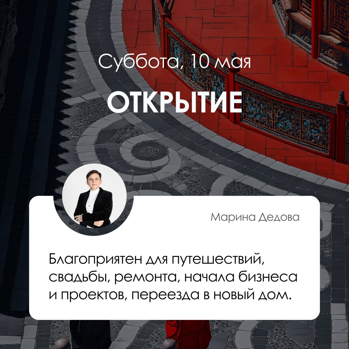 ✅ Прогноз на 10 мая, суббота Открытие Хороший день для начала многих дел. Он благоприятен для путешествий, свадьбы, ремонта, начала бизнеса и проектов, переезда в новый дом. Но не очень подходит для начала лечения, кроме экстренных случаев. Также не стоит посещать места большого скопления людей, можно подхватить вирус. Более внимательными и осторожными стоит быть людям, рожденным в год Петуха. Лучшие часы: Крыса (00-01, 23-00), Лошадь (11-13), Обезьяна (15-17) Худшие часы: Бык (01-03), Петух (17-19), Свинья (21-23) Пустые часы: Петух (17-19) *Прогноз дня указывает общие тенденции. Для важных событий даты лучше выбирать индивидуально. Лучшие часы – хорошее время для многих дел. Худшие часы – не подходят для большинства начинаний. Пустые часы – достаточно бесполезное время для важных дел.