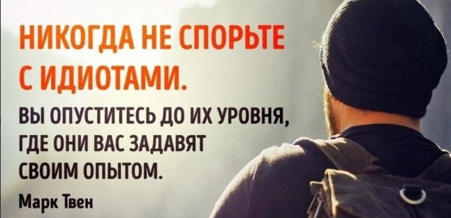 🔹Покупайте землю — ведь ее уже больше никто не производит. 🔹Никогда не спорьте с идиотами. Вы опуститесь до их уровня, где они вас задавят своим опытом. 🔹Истина — самое ценное, что у нас есть. Давайте ее экономить. 🔹Давайте жить так, чтобы даже гробовщик пожалел о нас, когда мы умрем.