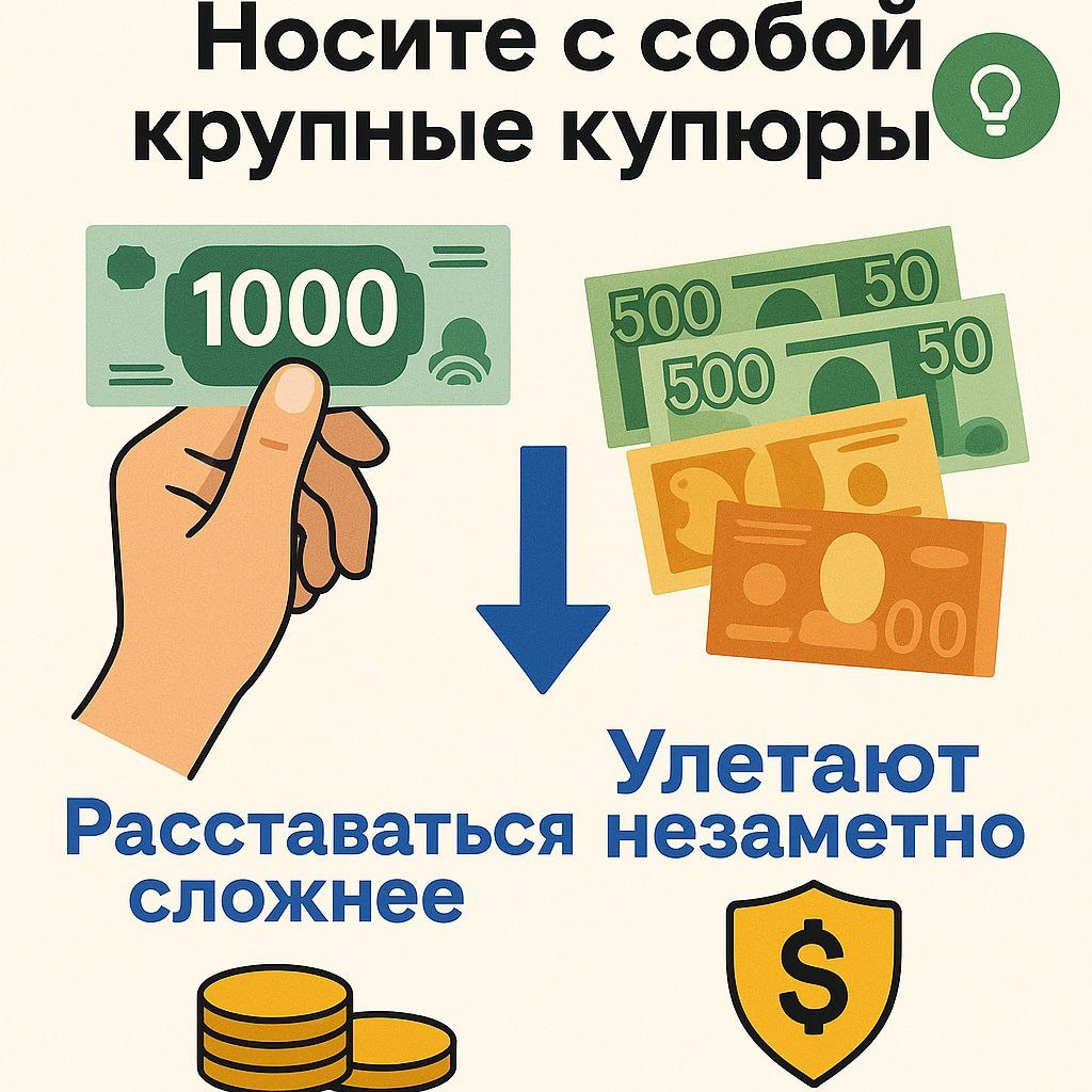 😅 Вам тоже жалко тратить 1000, но 500 «улетают» на ерунду за день? Это работает эффект номинала — мозг воспринимает крупную купюру как что-то «большое и ценное», а мелочь — как будто и не деньги вовсе. Поэтому кофе, перекус, ещё что-то — и денег уже нет. ✋ Есть лайфхак: носите с собой только крупные купюры. С ними попросту сложнее расставаться — и это поможет вам тратить осознаннее. Проверено: если не разменивать, то и не потратишь 🙃 #Полезное@fin_tyutor_olgahai #ModulLife@fin_tyutor_olgahai #расходы@fin_tyutor_olgahai #Созвездие_Профи@fin_tyutor_olgahai #деньги@fin_tyutor_olgahai