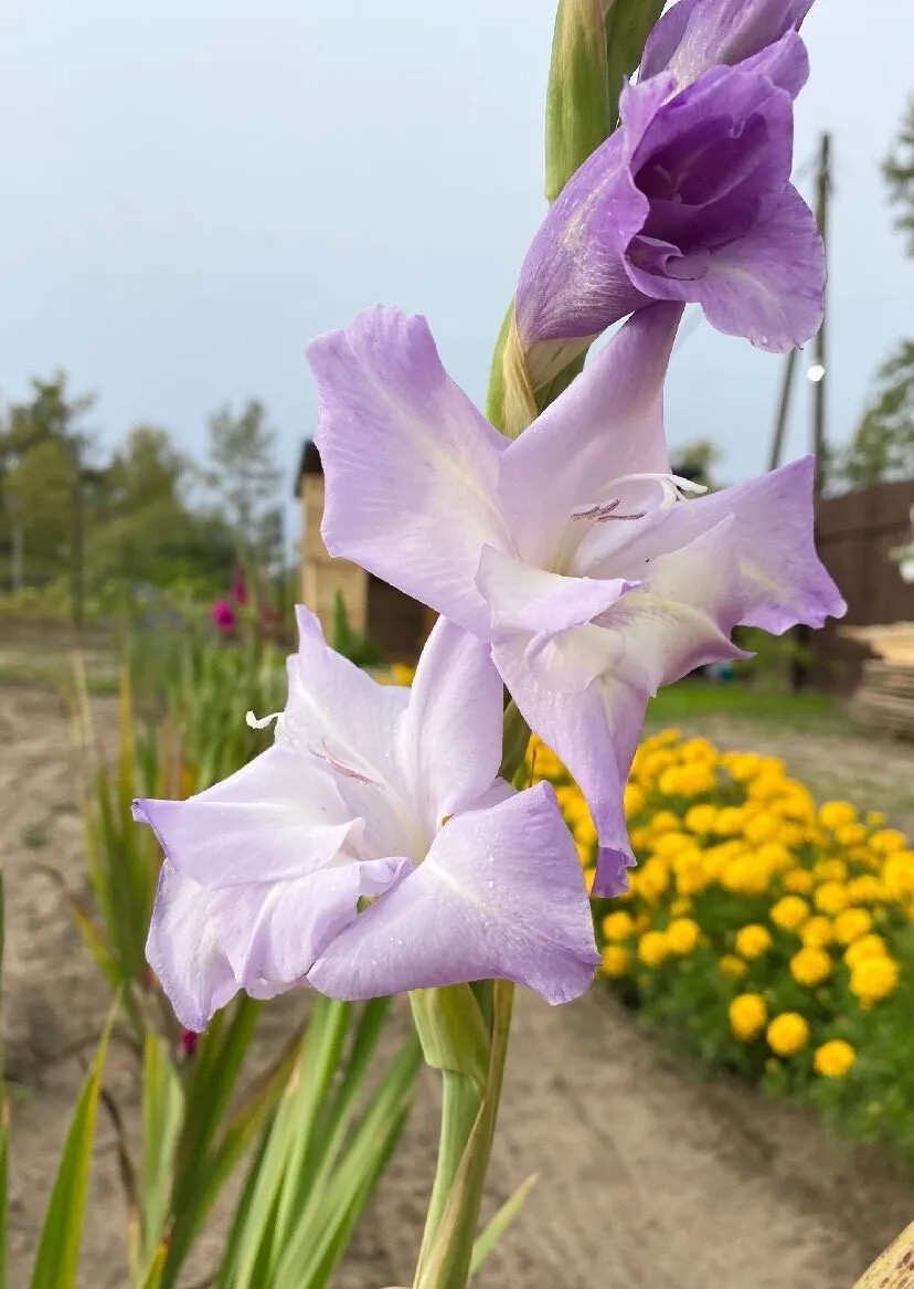 Гладиолусы сажаю каждый год, что бы они красиво смотрелись надо правильно их посадить. И дело тут не только в эстетике, хотя она, безусловно, важна. Правильная посадка – это залог здоровья растений, обильного цветения и долговечности луковиц. Гладиолусы обожают солнце, поэтому для них выбираю самый светлый участок в саду. Важно, чтобы он был защищен от сильных ветров, которые могут поломать высокие цветоносы. Почва должна быть рыхлой, хорошо дренированной и плодородной. Если почва тяжелая, добавляю песок и компост. За несколько недель до посадки достаю их из хранилища, очищаю от сухих чешуек и осматриваю. Если вижу признаки болезней или повреждений, выбрасываю. Здоровые луковицы обрабатываю раствором марганцовки для профилактики заболеваний. Сажаю гладиолусы весной, когда минует угроза заморозков. Глубина посадки зависит от размера луковицы: крупные сажаю на глубину 10-15 см, мелкие – на 8-10 см. Расстояние между луковицами – примерно 15-20 см. После посадки обильно поливаю. Уход