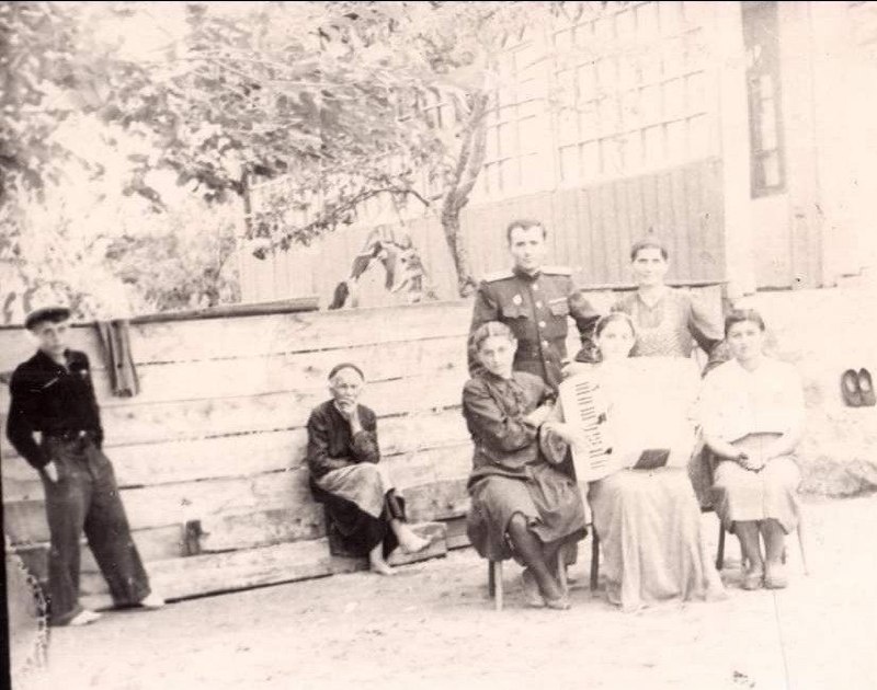 На глазах Фари́зат, бабушки моего деда, немец попытался застрелить молодого парня возле наших ворот, а она, сама маленького росточка, (на первом фото она сидит на завалинке на фоне), кинулась между ними: фашист, уже почти спустивший курок, все же не выстрелил, но ее жестоко ударил.
