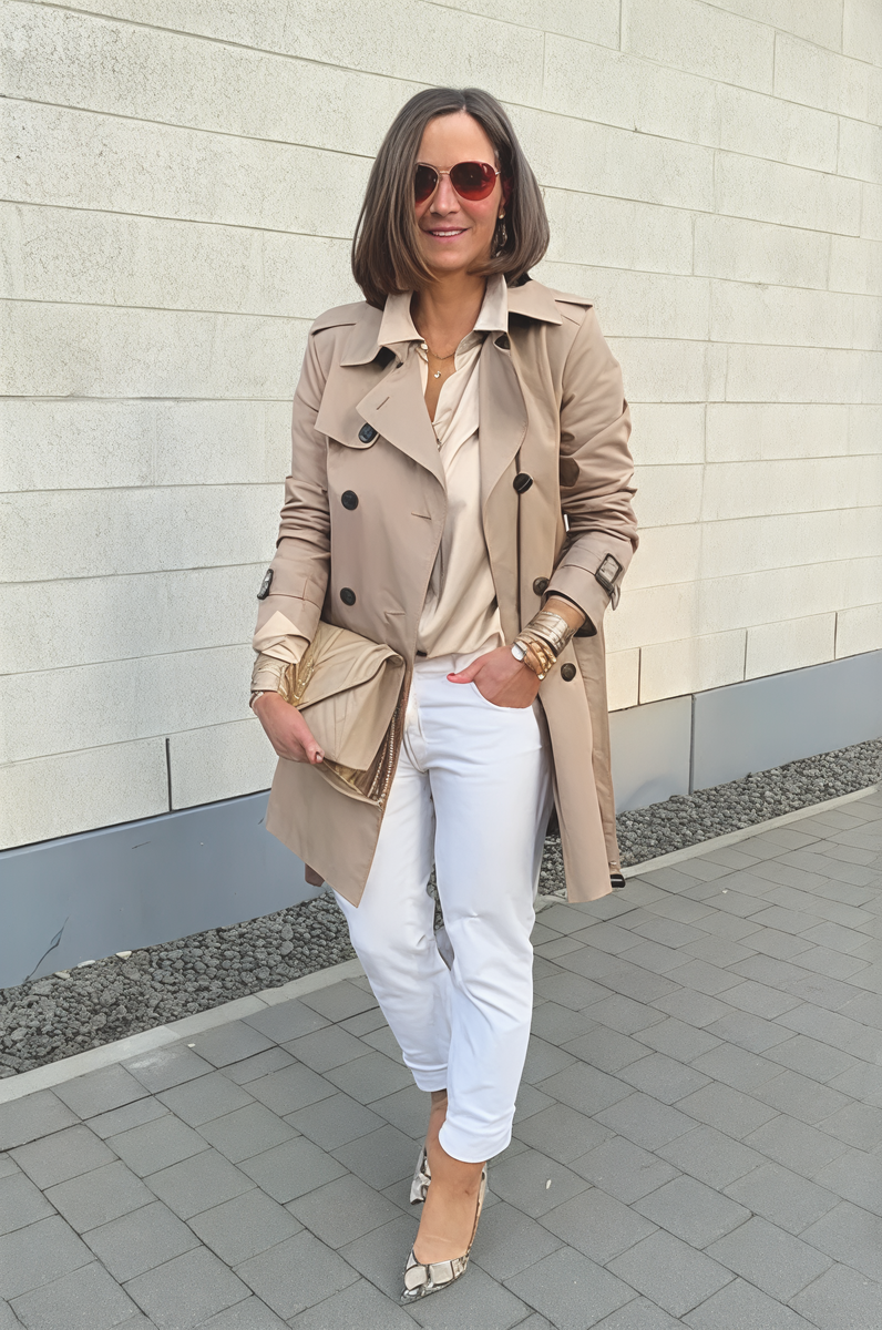 Верхняя одежда. Тренчи и пальто без лишнего объёма стоят на первом месте. Они не прячут фигуру, а деликатно подчёркивают её. Беспроигрышная длина — чуть ниже колена. Что до цветов — природные оттенки сейчас на пике популярности. Бежевый, серый, приглушённый оливковый выглядят благородно и сочетаются практически со всем.