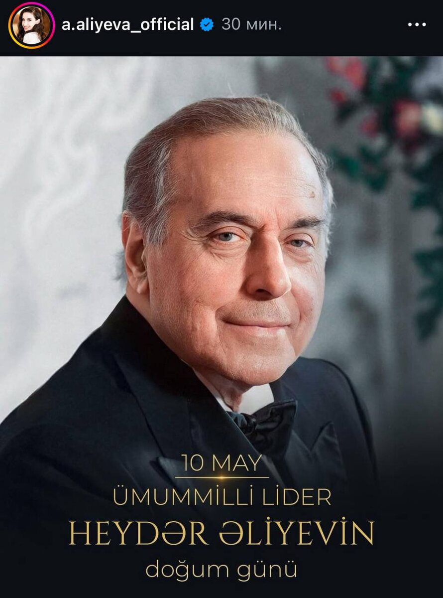 🇦🇿 Невестка Президента Азербайджана Ильхама Алиева Алёна Алиева поделилась публикацией в своем аккаунте в Instagram в связи со 102-й
