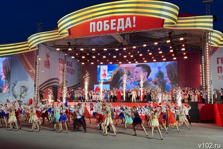 Волгоградская публика на ура встретила «Хор Турецкого» на Центральной набережной. Как сообщает корреспондент ИА «Высота 102», коллектив вышел на сцену в 20.00 – за два часа до праздничного салюта. – Как только хор показался на сцене, люди заметно оживились. Включив фонарики на телефонах, зрители тут же стали подхватывать слова всем известных военных песен, – передает корреспондент информагентства Леонид Луночкин. – Первой песней, которую волгоградцы исполнили совместно с артистами, стала «Смуглянка». Очевидно, почувствовав настрой волгоградцев, исполнители стали охотнее привлекать зрителей к исполнению песен. Хоровое пение разлилось над Волгой, когда на сцене зазвучала щемящая сердце каждого жителя нашей страны «Журавли». Напомним, концерт завершится в 22.00. В это же время в Волгограде дадут артиллерийский салют и фейерверк. Фото: Леонид Луночкин / ИА «Высота 102»