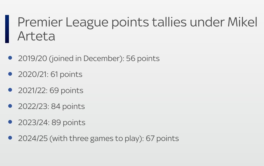 Количество очков "Арсенала" в Премьер-Лиге при Микеле Артете 📊