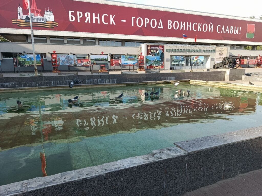 В неприглядном и обветшалом состоянии, скрытом от глаз общественности уже не первый год большим патриотическим баннером, встретило 80-ю годовщину Великой Победы здание главного Краеведческого музея региона. Он находится на площади Партизан в самом центре Брянска. Давно ли вы обращали внимание на Брянский государственный объединённый краеведческий музей на площади Партизан, расположенной в самом сердце столицы региона?.. Видимо, давно. А еще больше лет наверняка не были там или не подходили близко к его зданию. В каком виде главный Краеведческий музей нашего региона встретил нынешний юбилей Великой Победы? Хотелось бы рассказать о хорошем, но увы. Хвалиться нечем – очередную “ворчунскую” тему подсказали читатели. Облупившаяся штукатурка на стенах, облезшая краска, плесень и сырость у фундамента. Разбитые на куски гранитные плиты, которые сбиты с парапетов расположенных перед входом в Краеведческий музей двух некогда красивых фонтанов. Те же в свою очередь выглядит как после разрушительн