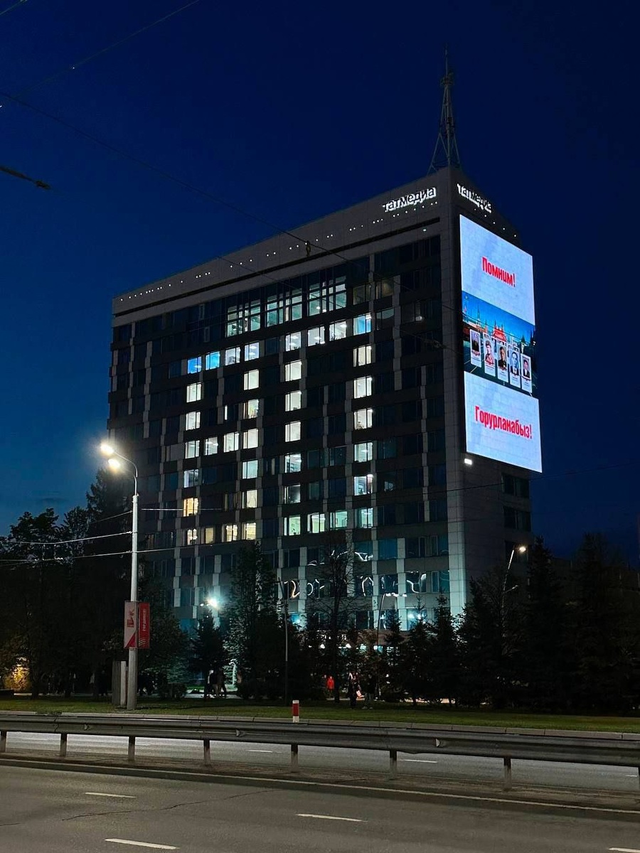 Казанда "Туганайлар" газетасы редакциясе һәм башка республика матбугат чаралары урнашкан "Татмедиа" бинасы, Бөек Җиңү уңаеннан, шулай 80