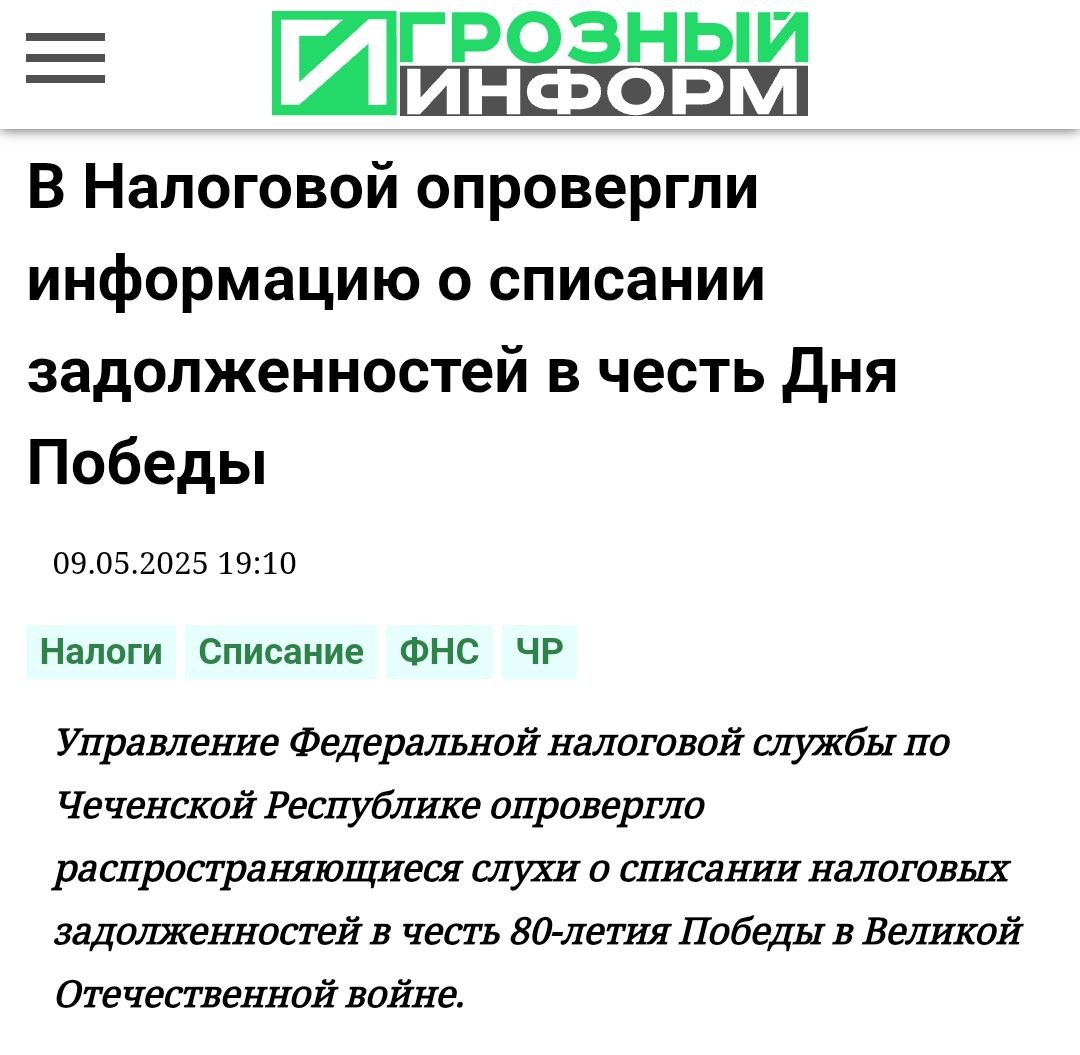 В Чечне ажиотаж вокруг «списания долгов» достиг таких масштабов, что пришлось ФНС публично опровергать слухи.