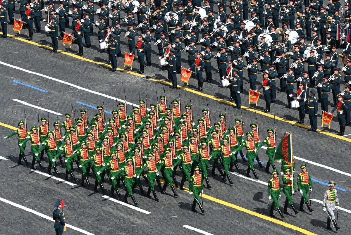 1941-1945 годов, проводимых в Москве. Всего 27 лидеров иностранных государств приняли участие в празднике победы над фашизмом. В числе тринадцати иностранных военных подразделений, принявших участие в Параде победы, были и представители Туркменистана. В едином Победном строю с остальными участниками торжества торжественным маршем по брусчатке Красной площади прошел и парадный расчет Вооруженных Сил Туркменистана. Сердар Бердымухамедов также принял участие в церемонии возложения цветом к Могиле Неизвестного Солдата в Александровском саду.