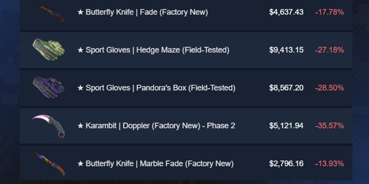 Внезапный взлет цен на скины в CS2 сменился резким падением, обвалившим рынок. Стоимость наиболее востребованных и дорогих скинов упала на 40%. Практически все контейнеры с косметическими предметами столкнулись с негативной динамикой: в частности, цена на Гамма-кейс сократилась на 47%. Меньше других пострадал кейс "Грезы и кошмары", его цена уменьшилась всего на 8%.