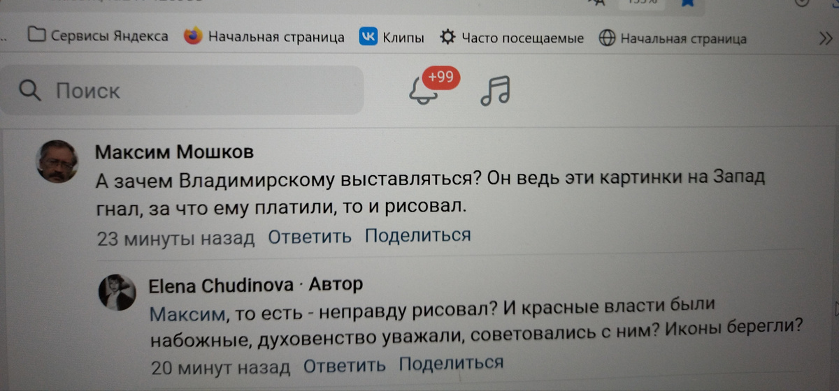 Я не собиралась, честно говоря, особо реагировать на этот бред, только заметила на своей страничке: неужели хоть кто-то способен ему поверить, будто Владимиров в 20-х годах мог даже мысль допустить предложить вот это всё - для советской выставки?!