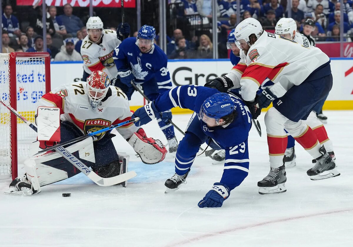 Сергей Бобровский пропустил всего 11 голов в пяти матчах серии первого раунда Восточной конференции, где «Флорида Пантерз» обыграла «Тампа-Бэй Лайтнинг». Но против «Торонто Мэйпл Лифс» двукратный обладатель «Везина Трофи» выглядит куда более уязвимым: за два матча в его воротах уже побывало 9 шайб, включая четыре – в поединке №2, который «Флорида» проиграла со счётом 3:4. Тем не менее уверенность команды в голкипере, который в прошлом году привёл её к первому Кубку Стэнли в истории, остаётся непоколебимой. «Какое слово ты использовал?» – переспросил у журналиста защитник Аарон Экблад. «Легенда? Да. Режим бога. Именно за это мы и любим Бобби. Не говоря уже о том, что он вообще-то лучший человек на планете». Два года назад, когда «Пантерз» во втором раунде обыграли «Торонто» со счётом 4–1, Бобровский был практически непробиваем – он отразил 164 из 174 бросков (94,3% спасений). Сейчас «Флориде», начиная с третьего матча серии, который пройдёт на домашней Amerant Bank Arena, нужна такая же
