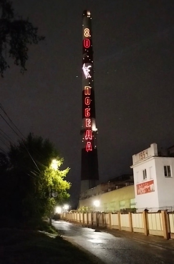 В Курске на трубе ТЭЦ-4 показали лазерное шоу в честь 80-летия Победы