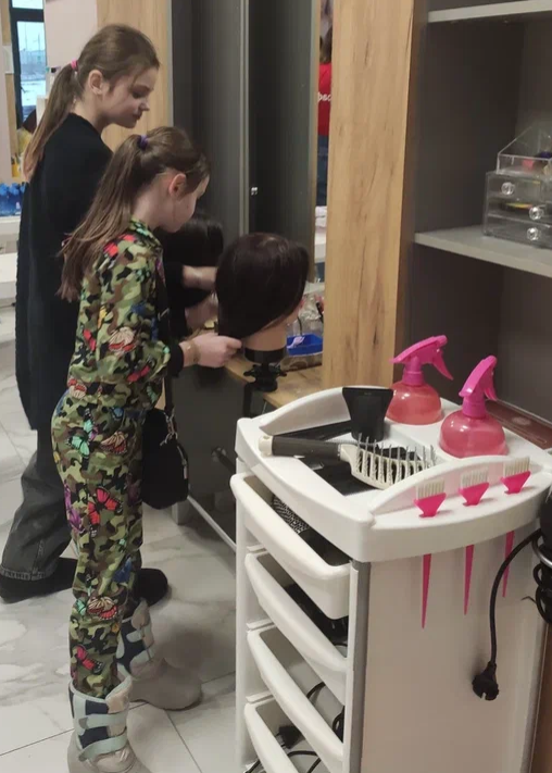 Что делать, если дочка не хочет делать прическу? А если дочек две? Конечно, можно запугать, что пострижете налысо, даже можно перестать на время расчесывать (пусть ходят лохматыми), но глобально проблему этим не решить. Поделюсь, как я решила этот вопрос, когда дети были еще маленькими. Начинаем игру в парикмахера "по-настоящему", друг другу делаем прически, сравниваем с журнальными моделями. Манекен для таких дел можно прикупить на маркетплейсах. Можно разделить залы, как в салоне, на мужской и женский. Так у меня младшая стала исключительно папиным стилистом, а старшая — моим, мне достались в клиенты обе дочки. Посмотрите, как наш семейный мужской мастер ведет блокнот, куда записывает всё важные моменты работы. Записываемся в салон красоты, ведем себя, как девушки (духи, наряды, колье), заранее обговариваем, что нельзя плакать, орать, ведь там мы "леди". Раскрываем нашу волшебную шкатулку с резинками и заколками, начинаем с придыханием выбирать, какая сегодня подходит к платью, как