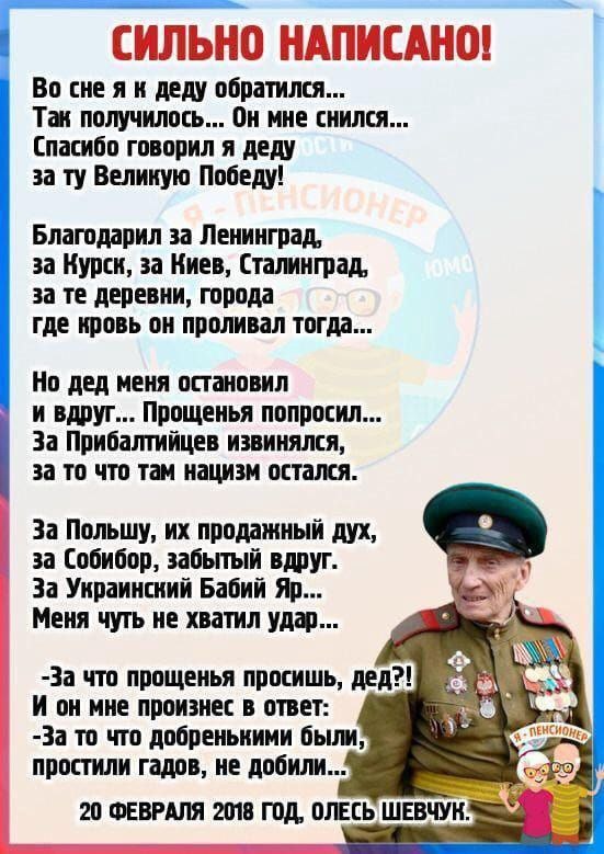Надеюсь подписчик меня простит, и не будет против публикации... От себя добавлю: Хз, с детства меня воспитывали что я жить могу благодаря деду, что этот их подвиг я должен до своих детей донести, что внукам своим должен рассказать и привить уважение к Великой победе. Что внуки мои настолько должны проникнуться от меня и моих слов, что своим внукам должны передать - чтобы помнили..... А тут такое.... Проморгали что то где-то, раз то против чего воевали наши деды - просто схоронилось в яме какой то, и теперь оттуда свою клешни поганые высунуло. Ваш таксопарк: «Высокий спрос» 🚕 89697774262 📲 Комиссия от 1% 💰 (Подключаем ко всем фирмам такси и доставки) 🚗📦 #такси #водитель #курьер