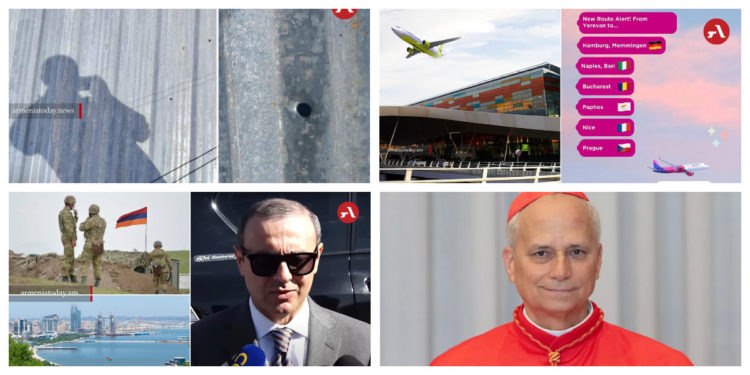- Азербайджанские войска 7 мая открыли огонь по селу Хнацах Сюникской области и повредили крышу жилого дома, пострадавших нет.