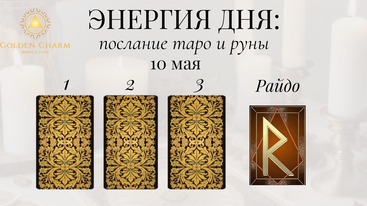 Заказать личный расклад тут✅ Прогноз на 10 мая : что тебя ждёт Приходи на обучение Таро ✅ Выбери карту — 1, 2 или 3 — и узнай, какой путь для тебя: 1. Король Кубков Это день эмоций и открытий. Ты почувствуешь глубокую связь с окружающими людьми, сможешь поддержать тех, кто нуждается в твоей помощи. Это время любви, понимания и мудрости. 2. Девятка Жезлов Подготовься к защите своих целей и достижений. Сегодня ты столкнешься с препятствиями, но твоя стойкость и решимость помогут преодолеть любые трудности. Верь в свои силы! 3. Двойка Жезлов Время выбора направления. У тебя есть возможность рассмотреть новые перспективы и возможности. Важно сделать осознанный выбор, который приведет тебя к успеху и процветанию. Руна дня — Райдо Путешествие и движение вперед. Этот день принесет изменения и развитие. Возможно, предстоит поездка или важное событие, которое откроет перед тобой новые горизонты. Напиши цифру карты + РАЙДО в комментариях, чтобы активировать энергию. Хочешь ли