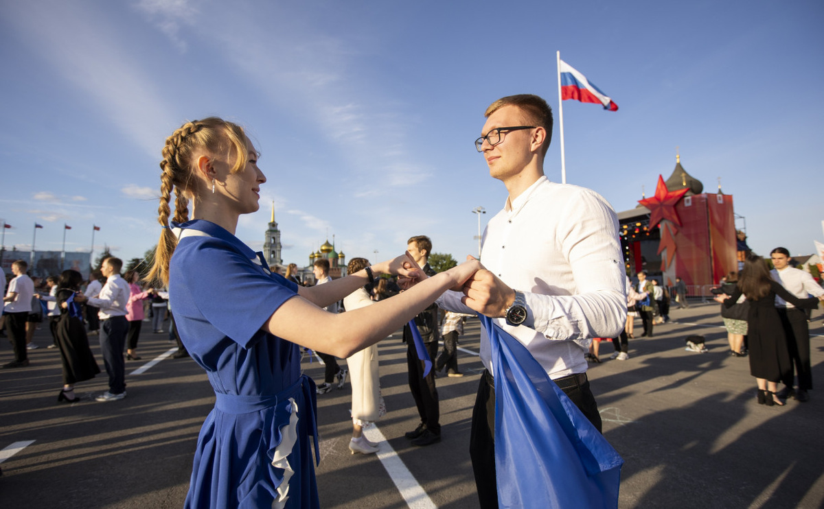 На главной площади города сотни туляков станцевали вальс под «Синий платочек»