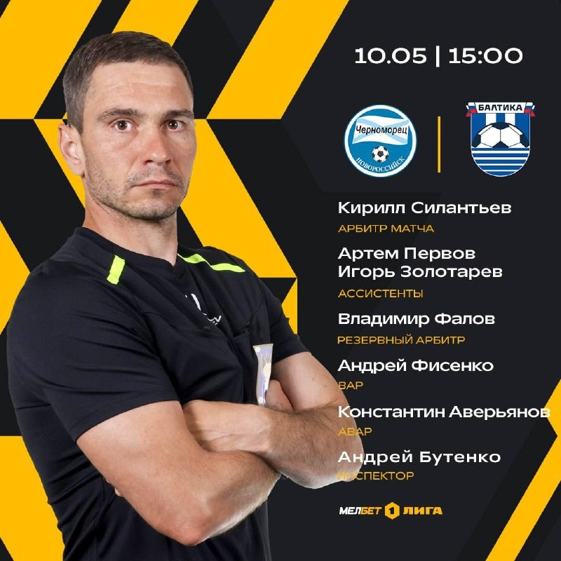 На матч «Черноморец» ⚔️ «Балтика» назначена следующая бригада арбитров: 🚩 Главный арбитр матча — Кирилл Силантьев 🏳 Ассистенты судьи — Артем Первов, Игорь Золотарев 🔄 Резервный арбитр — Владимир Фалов 📺 VAR — Андрей Фисенко 👀 AVAR — Константин Аверьянов Инспектор — Андрей Бутенко В качестве главного судьи Кирилл Владимирович работал на трех матчах «Балтики», в которых наша команда один раз одержала победу и единожды сыграла вничью. В этих встречах было показано семь желтых карточек.