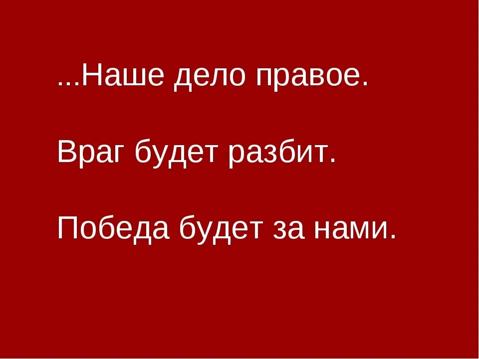 Родиться в России - значит обрести великое доверие Бога человеку. Разные были в нашей истории времена, но чудесная наша страна, наша удивительная "птица-тройка" всякий раз возрождалась из пепла, потому что была заповедана для будущего, потому что это будущее доверили нашей стране, каждому из нас. И мы за него сражаемся и обязательно победим. Мы не можем не оправдать то доверие, которое нам оказано, не можем отказаться от своего предназначения, ведь Россия- территория смыслов, и нам нужно эти смыслы дать всему человечеству. Мы репетировали весь 20 век, и за нами пошли многие. Многие нам поверили, и сегодня мы их видели на Параде. Запад прекрасно знает о нашем предназначении, и поэтому хочется их спросить: вы себя бессмертными почувствовали, жить надоело. Вы против России пошли? Нет, вы пошли против Исторического процесса, и нет такой воли на земле, которая могла бы повернуть его вспять, а значит нет такой воли, которая могла бы нас сломить. Дунут, плюнут, и от вас останется мокрое мес