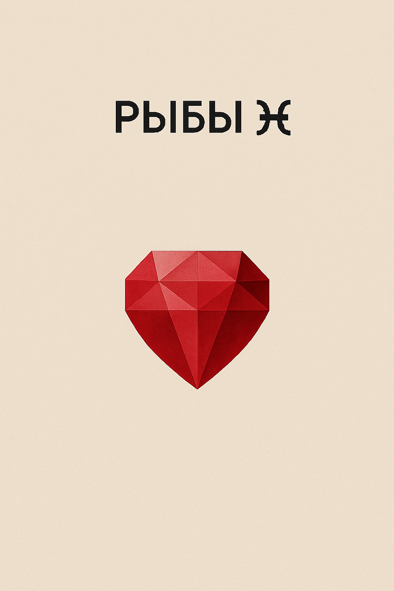 Рубин не делает Рыб жёстче. Он делает их целыми. Не вытаскивает из чувств — а помогает не потеряться в них. Он не отменяет твою тонкость — он даёт ей форму, границы, устойчивость.