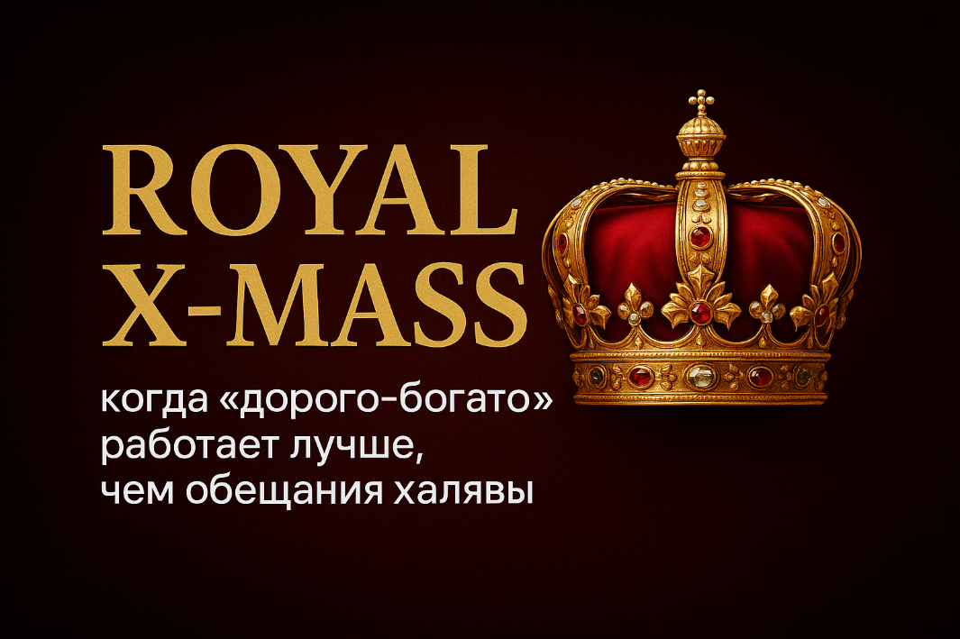 Он видел: А вот что вызывает уважение и вовлечение: Royal X-mass от Эндорфина — это визуальный месседж: «Мы не продаём. Мы просто красиво выглядим. А ты сам решай, зайти или нет.»