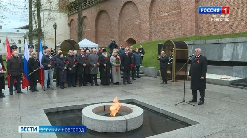 Уже 60 лет этот мемориал остаётся главным напоминанием о тяжелейших испытаниях, которые пришлось пережить нашему региону в годы Великой Отечественной войны. Поэтому, чтобы почтить память героев, 9 мая у стен Детинца ежегодно собираются сотни новгородцев, ветераны боевых действий и официальные лица. Кроме этого, уже традиционно, в этот день здесь вручают областные награды городам и посёлкам Новгородской области, жители которых 80 лет назад совершили подвиги в бою и на трудовом фронте. «Сегодня мы вручаем двум нашим населенным пунктам — городу Холму и селу Комарово Любытинского района — наши областные награды: «Город воинской доблести» и «Населенный пункт трудовой доблести», — сказал председатель Новгородской областной думы Юрий Бобрышев. Город Холм был оккупирован фашистами более девятисот дней, стёрт с лица земли и затем отстроен заново. Село Комарово в военное время стало одним из главных рабочих посёлков по добыче бурого угля. Тогда более 60 тысяч тонн топлива, добытого из Борович