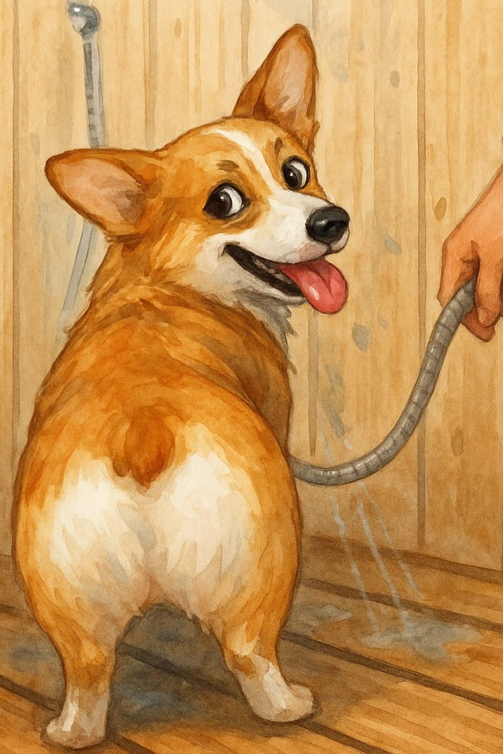 Привет! Это снова я, Лана — корги, чья попа сияет белоснежностью даже после самых эпичных приключений. И если ты думаешь, что собаки не могут быть гурманами в выборе... луж — ты ошибаешься. Я могу отличить дождевую жижу от весенней глины с закрытыми глазами. Потому что я — эксперт по грязелечению. История началась в тот день, когда небо, видимо, слишком расстроилось из-за чего-то и решило выплакать весь свой запас дождя прямо нам на деревню. Люди заныкались по домам, а я... а я поняла: вот он, мой момент! Выходишь на улицу, а там всё хлюпает, шлёпает, блестит. Вся земля превратилась в сплошную бесплатную грязевую ванну. Папа с зонтом, мама с тревогой в голосе: