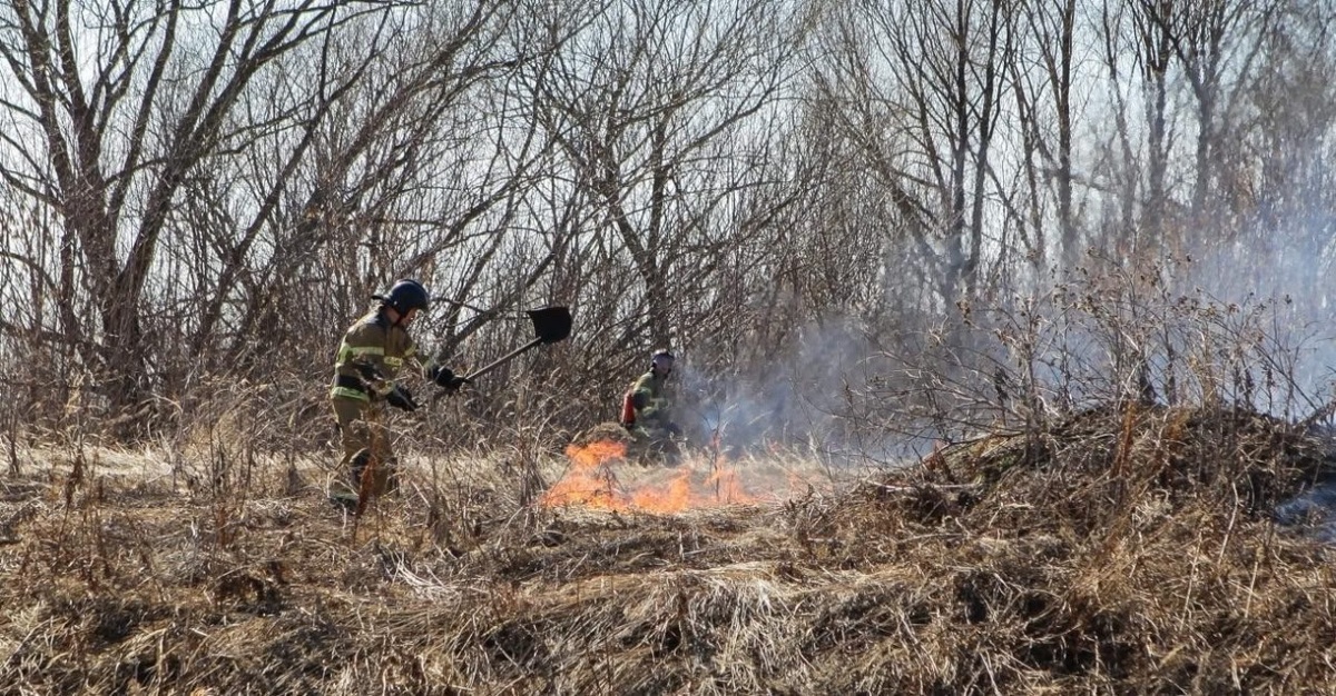 На Сахалине пламя охватило восемь гектаров сухой растительности