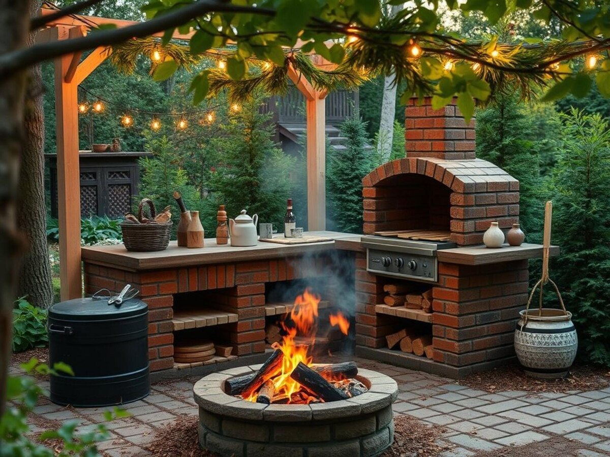 Лето, запах жареного мяса, друзья вокруг — что может быть лучше? Зона барбекю на даче превращает обычные выходные в маленький праздник. Но чтобы всё было по-настоящему удобно и атмосферно, стоит продумать детали заранее. Не стоит ставить мангал где попало. Место должно быть удобным, безопасным и при этом создавать нужное настроение. Слишком далеко — неудобно таскать продукты. Слишком близко — дым в окна. Оптимально: 5-7 метров от дома, с подветренной стороны. Бетон или тротуарная плитка — практично, но скучно. Попробуйте: Без хорошего очага никак. Вариантов масса — от простых до экзотических. Пластиковые стулья — прошлый век. Сейчас в тренде комфорт и натуральные материалы. Деревянный стол с лавками — беспроигрышный вариант. Для комфорта добавьте: Если место позволяет, поставьте пару шезлонгов или подвесное кресло. Для вечерних посиделок — плетёная мебель с мягкими подушками. Именно мелочи превращают обычную площадку с мангалом в любимое место отдыха. Главное — не перегрузить пространс