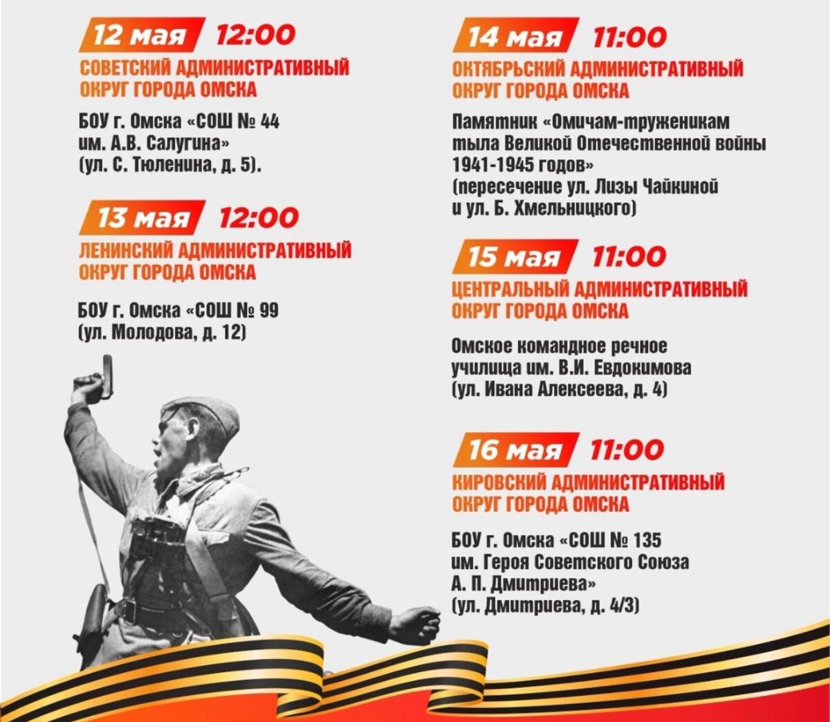 В Омске состоится юбилейный легкоатлетический пробег, приуроченный к 80-й годовщине Победы в Великой Отечественной войне 1941–1945 годов. Пробег охватит все административные округа города и пройдет под девизом «Гордись своим именем, Улица». Участниками станут учащиеся общеобразовательных школ, а также студенты средних и высших учебных заведений. Мероприятие запланировано на 12-16 мая 2025 года и будет проходить на территории школ, названных в честь Героев Советского Союза и ветеранов войны, либо на площадках с установленными мемориальными досками. Фото: Администрация города Омска