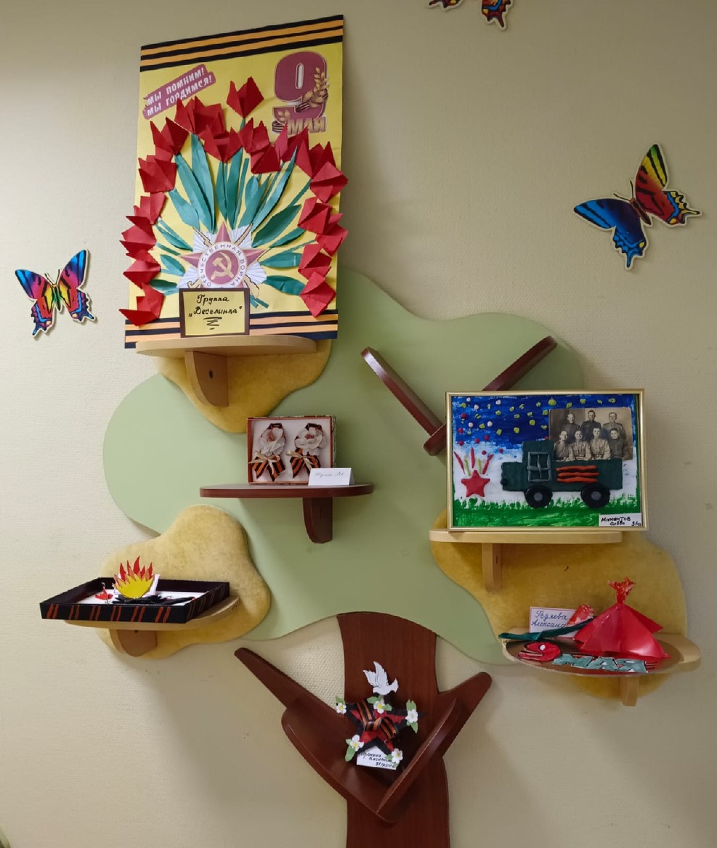 Тематическая выставка семейных творческих работ «День Победы» 🎗️ проходит в эти дни в нашем дошкольном отделении