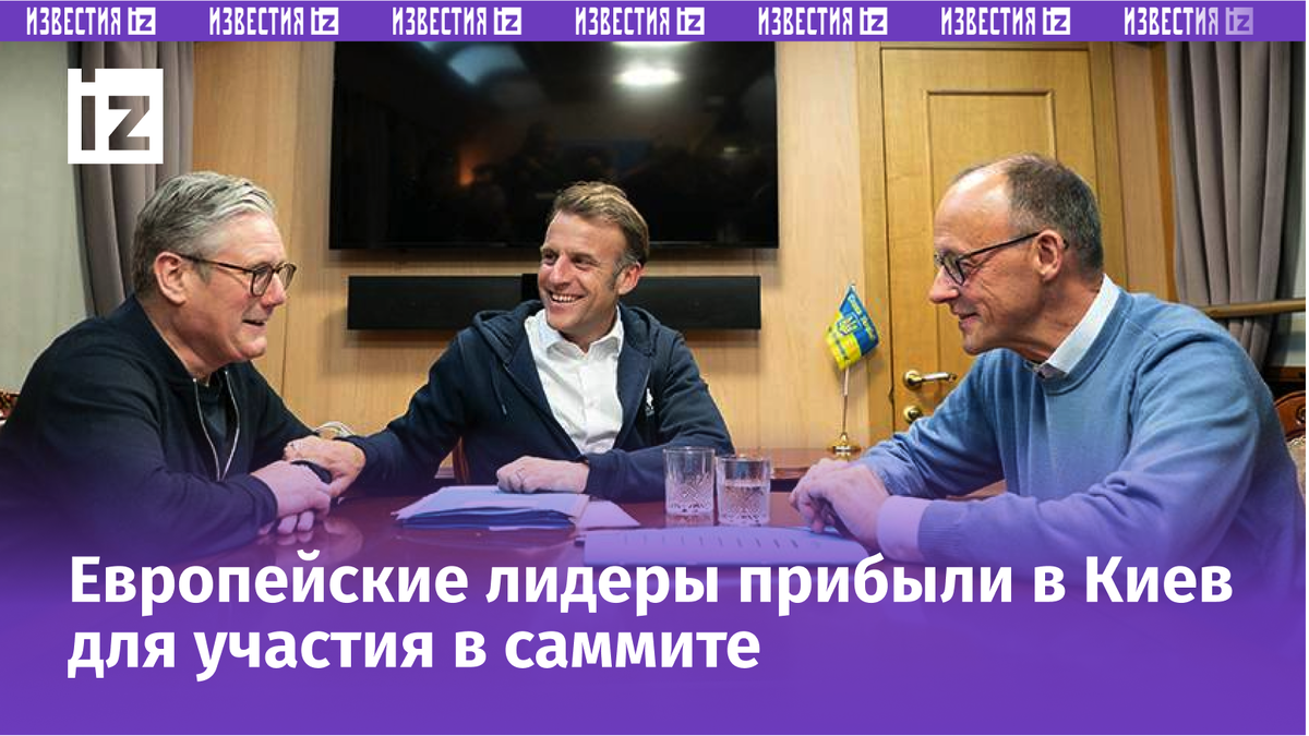 Президент Франции Эммануэль Макрон, премьер-министр Британии Кир Стармер и канцлер ФРГ Фридрих Мерц прибыли в Киев для участия в саммите. Об этом 10 мая сообщил немецкий журналист Вульф Шмизе. «После ночи, проведенной в специальном поезде, прибыли в Киев», — написал он в социальной сети Х (бывш. Twitter). Шмизе сообщил, что премьер-министр Польши Дональд Туск тоже прибыл в столицу Украины. Европейских лидеров на вокзале встретили украинские чиновники и журналисты. Уточняется, что политики прибыли в Киев для участия в саммите «коалиции желающих», на котором будет обсуждаться поддержка Украины странами Европы. 30 апреля заместитель министра обороны России Виктор Горемыкин заявил, что европейские страны сопротивляются стремлению к урегулированию конфликта на Украине. Он отметил, что на недавнем саммите в Париже европейские лидеры обсуждали усиление давления на Россию, а также возможность отправки на Украину сил сдерживания НАТО. Ранее, 23 апреля, глава офиса украинского президента Владими
