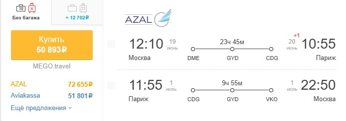 ✈️Москва - Париж (Франция), пересадка в Баку, туда и обратно за 50900 рублей