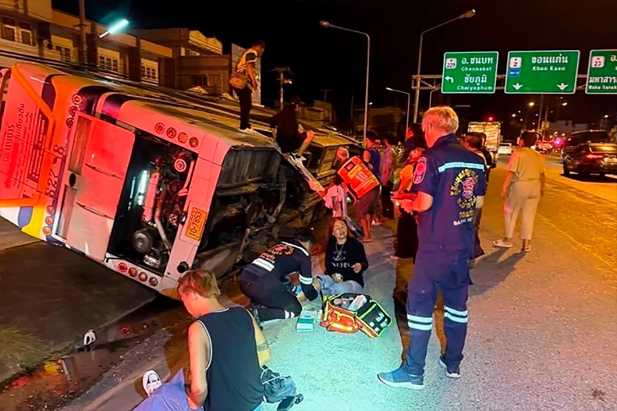 В посольстве России отметили, сведений о нахождении российских граждан этом автобусе не поступало. Правоохранители расследуют обстоятельства аварии. Рейсовый автобус перевернулся в Таиланде. 15 пассажиров пострадали и были доставлены в больницы. По данным газеты Manager Online, всего в автобусе находились 36 человек. Он ехал из курортного Районга на восточном побережье Сиамского залива в Накхонпханом на северо-востоке страны. Авария случилась в пятницу, 9 мая, в провинции Кхонкэн неподалеку от пункта назначения. Автобус съехала с дороги и перевернулся. В консульском отделе посольства РФ в Таиланде отметили, что сведений о нахождении россиян в этом автобусе не поступало. Правоохранители расследуют обстоятельства аварии. Ранее сообщалось, что испанский курорт Коста-дель-Соль превратился в рай для бандитов. ________________ Подпишитесь на наш канал, ставьте лайки и пишите свои комментарии, этим вы поможете донести важную информацию до большего количества людей.