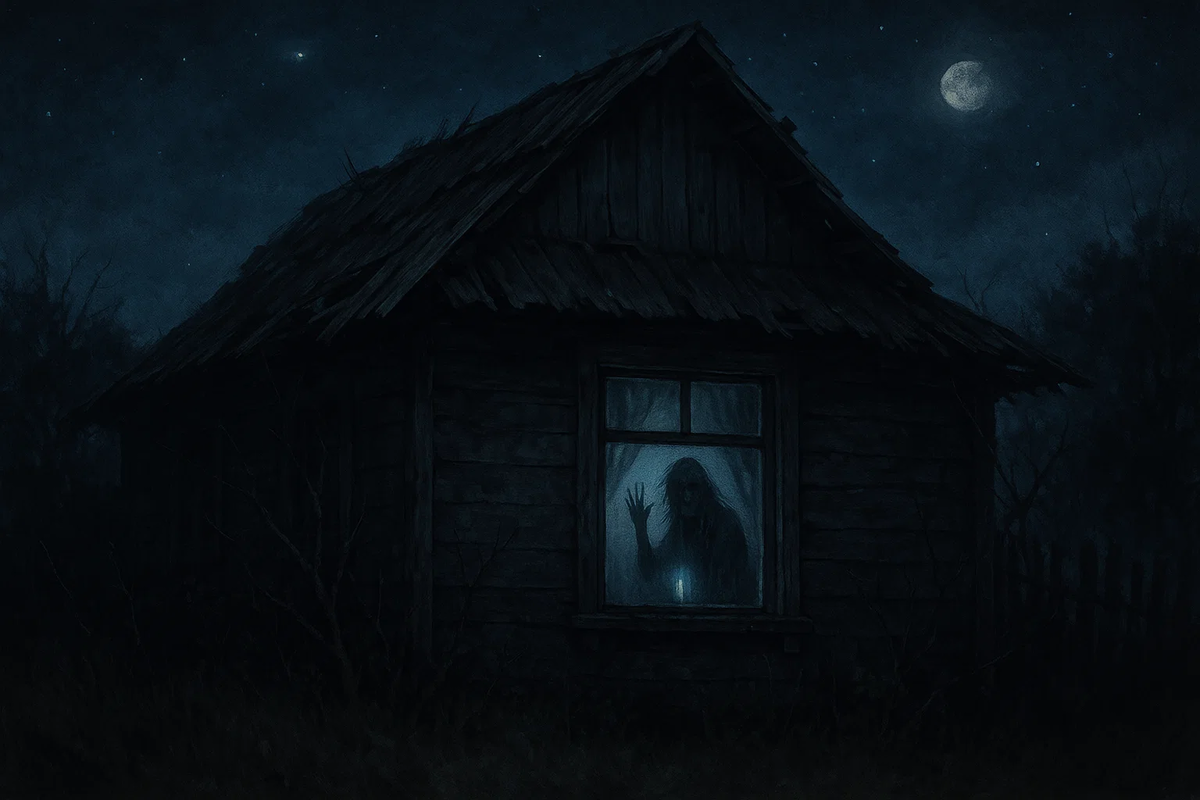 Этим летом я приехал к родственникам в небольшую деревню неподалёку от Чернигова. Место знакомое до дрожи: каждый уголок, каждая тропинка — всё как на ладони. Я знал и новый двухэтажный особняк какого-то заезжего бизнесмена, и старую заброшенную хату на краю деревни, где, по слухам, когда-то жила старуха-ведьма. Последние лет пять, а то и больше, дом стоял пустой, с покосившейся крышей и выбитыми стёклами. Местные байки гласили, что там обитают призраки, души или ещё какая нечисть. Я, честно говоря, считал это сказками для детей, чтобы те не лезли в развалюху — того и гляди, балка на голову рухнет. Но всё равно, проходя мимо, невольно ускорял шаг: уж слишком зловеще выглядела та хата, особенно в сумерках. Как-то раз, в один из тёплых июльских вечеров, я возвращался из сельского клуба. Время было позднее, около десяти, небо уже потемнело, только звёзды мигали да луна светила тускло. Шёл я по знакомой дороге, что вилась мимо той самой заброшенной хаты. И вдруг заметил: в одном из окон,