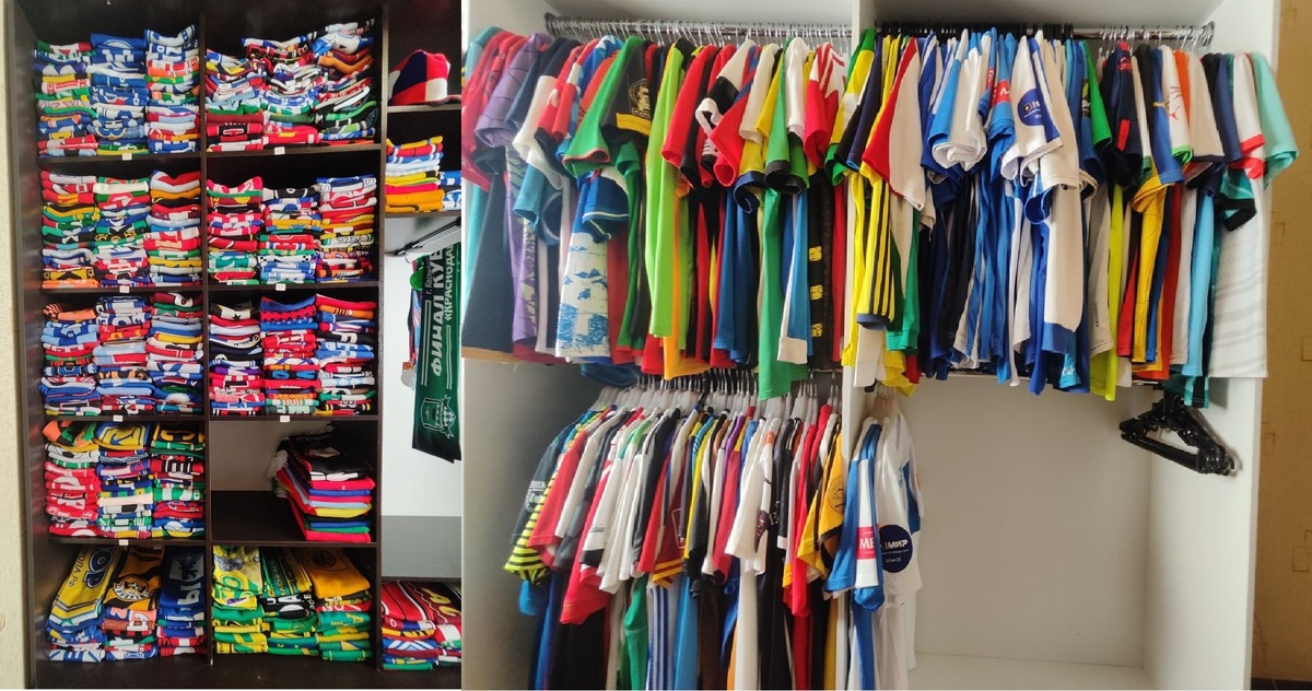 - Как возникла идея коллекционировать игровые футболки и шарфы клубов? Сколько вещей у тебя сейчас?
