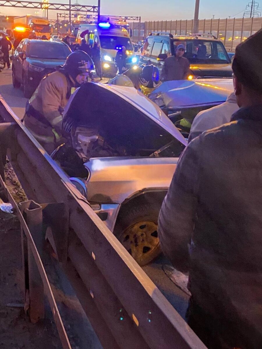 На внутреннем кольце КАД у съезда в Мурино произошло массовое ДТП. Трое серьёзно пострадали. Сотрудники МЧС разрезали Волгу для извлечения пострадавших. По словам очевидцев, каршеринг сбил мотоциклиста при перестроении из левой полосы, после чего произошло еще одно ДТП. Двое из Волги госпитализированы в тяжелом состоянии. У мотоциклиста сломана нога. 👉🏼Подпишись